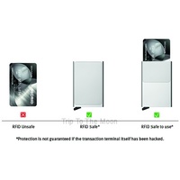 To safely use an RFID/NFC card, you slide it out 3 cm from the Cardprotector; the sensitivity for the radio signal is then substantially reduced, but still sufficient for contact over short distances. By minimising the time duration and signal strength, you remain outside the reach of digital pickpockets.