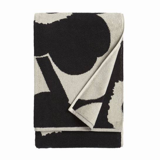 Beautiful blooms in the bath! Unikko poppies hopped onto our generously sized bath towel. Bring the classic Unniko pattern into your bathroom . This towel is made with 100% cotton and has reinforced ribbing on the ends to keep you dry and happy for a long time.