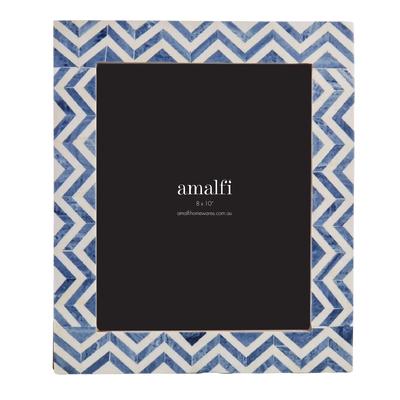 This frame is crafted from wood and resin in a blue and white coastal-inspired finish.