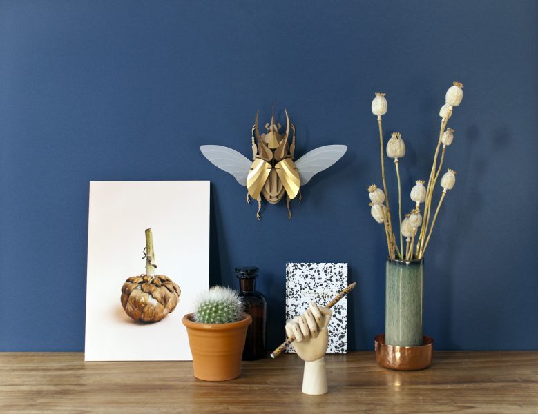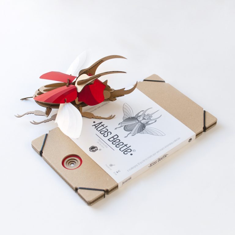 In mythology Atlas carries the whole world upon his shoulders. In fact we don’t know exactly what this has to do with the name of this beetle, but that really doesn’t matter. This Atlas beetle will fit in perfectly your interior anyhow. Choose one of the beautiful colours and start building. Within 45 minutes you can give it a nice place in your home.