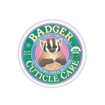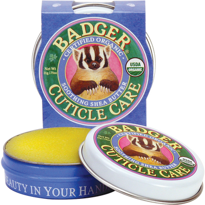 Badger's Cuticle Care balm deeply soothes and protects dry and splitting cuticles. This cuticle care contains creamy shea butter and vitamin rich seabuckthorn CO2 extract to restore tired fingers and restore nail health. Steam distilled essential oils of geranium, mandarin, lemongrass and ginger give your hands a light citrus scent. USDA certified organic and cruelty free, a little of this balm goes a long way.