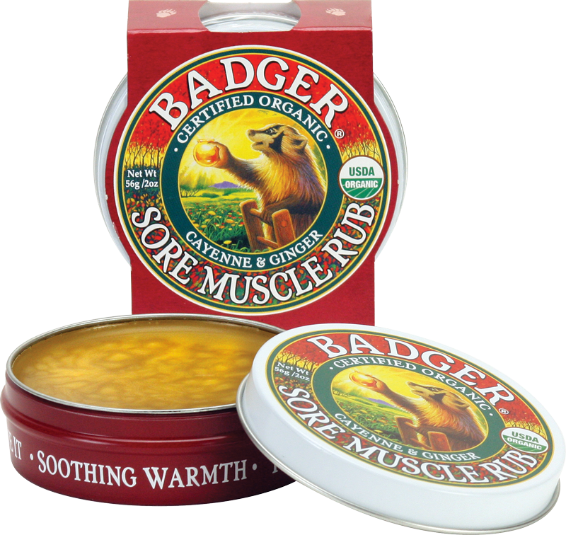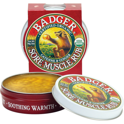 The Badger Sore Muscle Rub gently warms and stimulates circulation, to help keep muscles and joints loose before and after exercise. Experience the power of Cayenne Pepper and Ginger as they gently soothe and relax tense, sore muscles. USDA certified organic and gluten free.