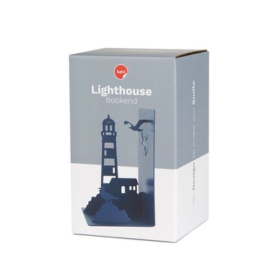 Balvi Bookend Lighthouse Blue colour Classic view of the coast: lighthouse and seagulls. Made of metal for extra strength. Includes non-slip support points. Protects your books from falling and organizes them on the shelf, in the bedroom or office. For marine enthusiasts, divers or hobbyists, it will be ideal for keeping your books tidy and free from falling out! Bookend simulating a classic coastal view, with a lighthouse and seagulls.