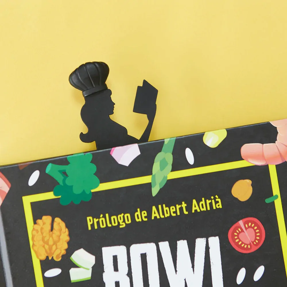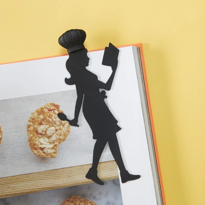 This bookmark takes the form of a charming female baker in action, complete with a spoon and a book in her hands, topped with a stylish chef's hat. When you close your book, her hat elegantly protrudes from the pages, making it easy to resume reading.