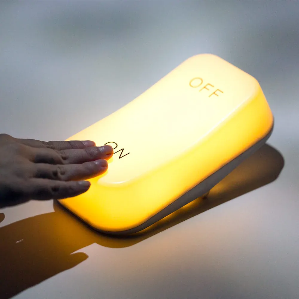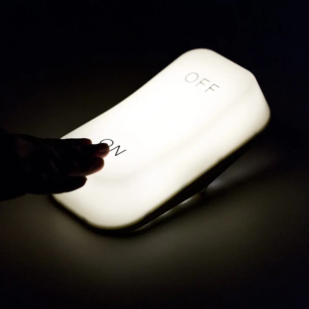 This playful lamp, shaped like a giant switch, lights up when you tilt it toward the “ON” side and turns off when flipped back. Powered by USB or batteries, it brings light to any space.