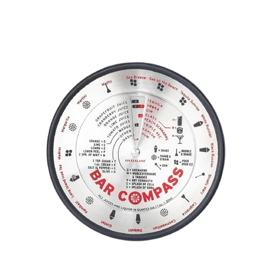The Bar Compass is the must have accessory for any bar cart. Its slim, stainless steel design rotates to reveal 16 different drink recipes right down to the type of glass, method and garnish. Simple to use, attractive to display.