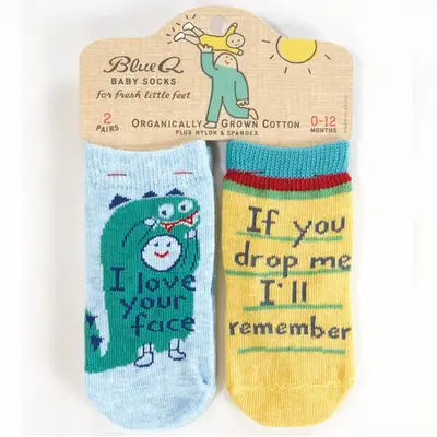 Blue Q Baby Socks I love Your Face / Drop Me I'll Remember