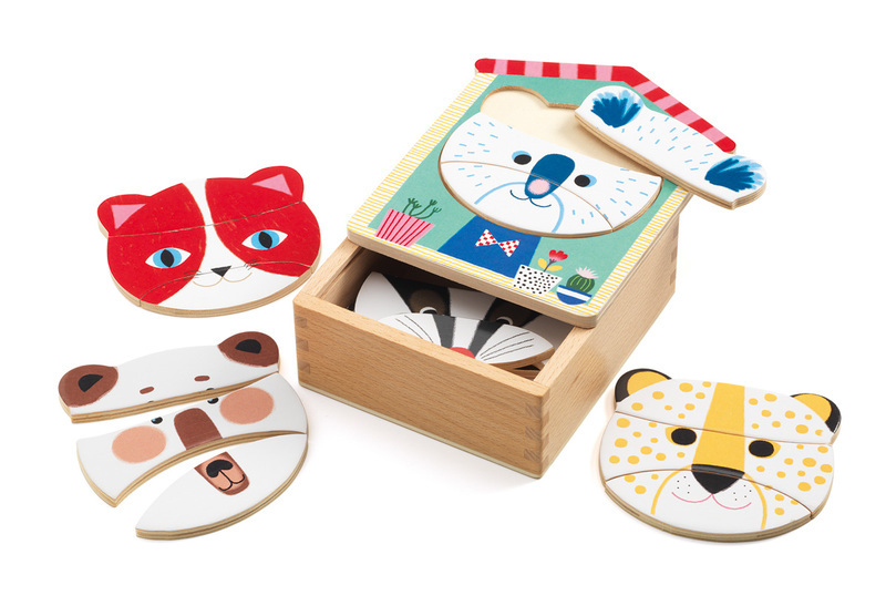 An adorable wooden puzzle set to recreate the 6 animal faces.