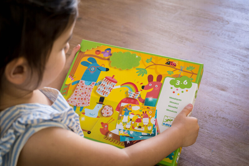 A dazzling collage activity to make 4 designs with printed, glittery, and metallic self-adhesive foam pieces. A great way to introduce little ones to mosaics, where the child sticks pretty foam shapes on really funny illustrations. Easy to follow instructions and simple enjoy for little ones to do on their own.