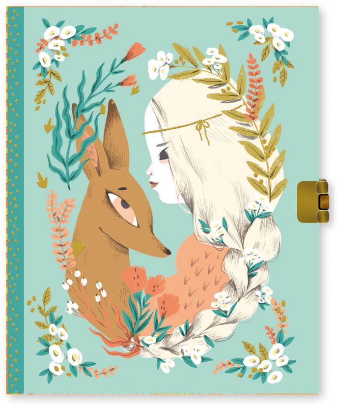 A lovely 92 page lined book with detail on each page. Children will adore writing their journal or thoughts in this beautiful book then locking it with the padlock to keep them secret. The cover features an illustration with metallic effect of a girl and fawn.