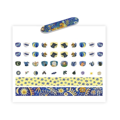 Finally, a super-quick manicure for little ones that's easy to put on and take off! From the smallest sticker for your little finger to the largest for your thumb: stick, press, done! No nail polish to get chipped - just the joy of decorating your nails with pretty illustrations! And to change up the patterns or create your own sticker, cut a piece of the adhesive strip to the size of the width of your nail.