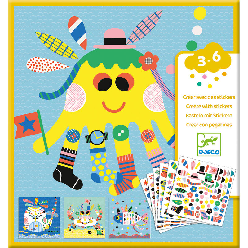 Use the provided stickers to create some fun, playful underwater animals. Great for building fine motor skills and taking away on holidays.