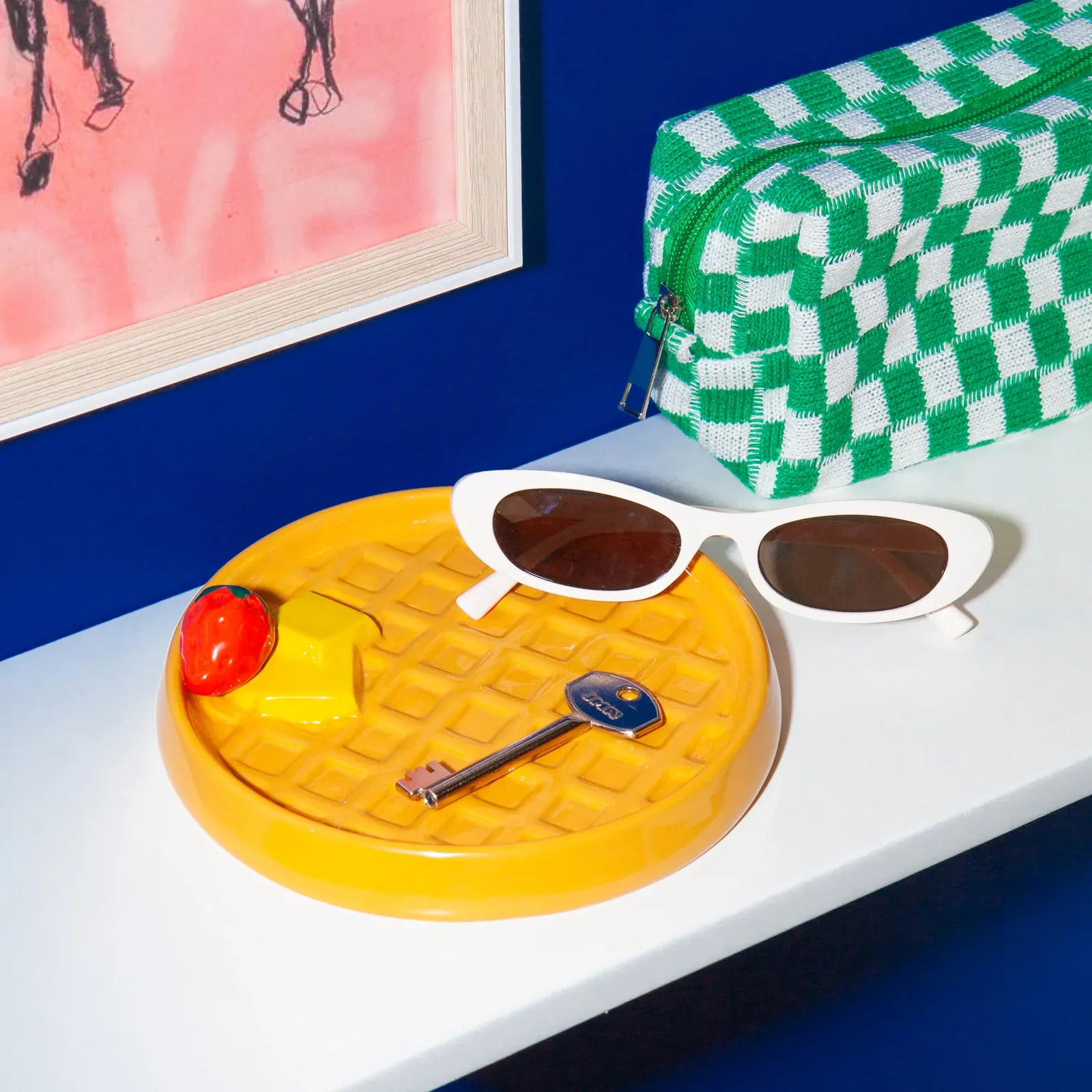Trinket tray in the shape of a pressed waffle. Make organisation a little sweeter with the Good Morning Waffle Trinket Tray. Combining playful design with practical function. Perfect for your small essentials.