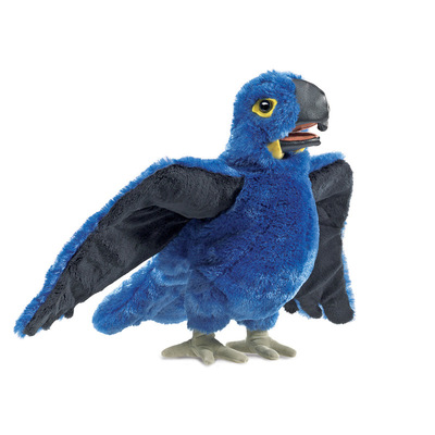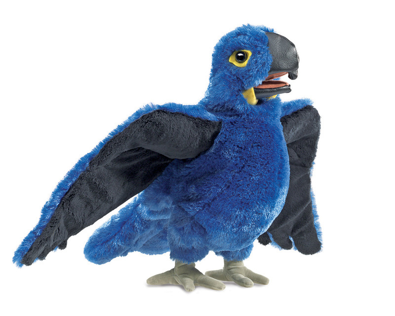 Bring the beauty of the tropics home with the Folkmanis BLUE MACAW puppet. Brilliantly colorful and wonderfully animated, this fine feathered friend moves mouth and wings naturally. With your imagination, pretend to explore the canopy of your exotic rainforest home.