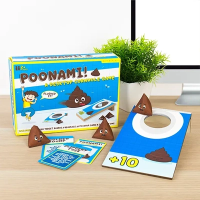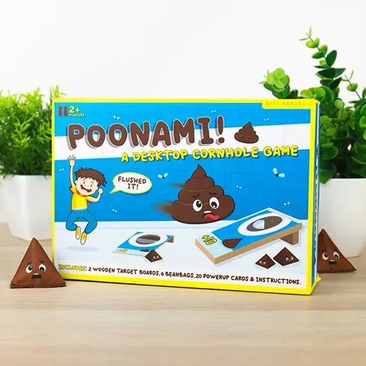 Get ready to stir up a storm with Poonami! – the laugh-out-loud desktop cornhole game that’s as cheeky as it is competitive. Perfect for kids, families, and anyone who loves a bit of toilet humour, this fast-paced flinger is packed with fun and silly chaos. Your mission? Fling your poonami beanbags into the pop-up toilet targets to rack up big points. But don’t expect an easy flush to victory—every round brings wild action cards, sabotage moves, and sneaky strategies to keep things clogged with chaos.
