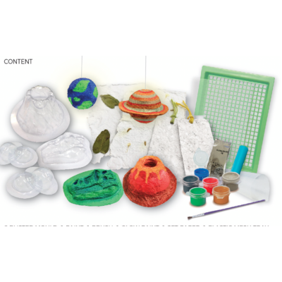 Learn to recycle old paper and make your own handmade art! Have unlimited fun recycling used paper and make environmentally friendly craft projects. The kit includes plastic mesh tray and screen, plaster moulds, paints, brush, glow paint, scroll tool and detailed instructions.