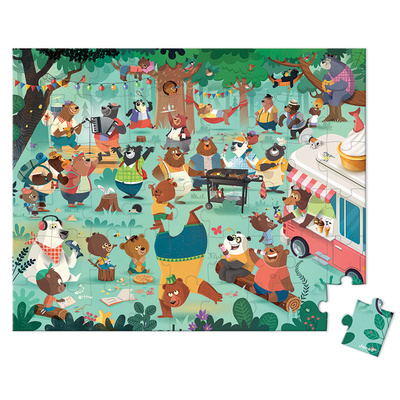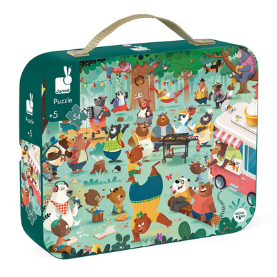 If you go out in the woods today... you'll come across the bears having a picnic! Put the 54 piece jigsaw together and when it is completed you will see the bears having a load of fun cooking a barbie, playing music or just sitting back and relaxing. See if you can find the rabbit or fish. A gorgeous puzzle presented in the iconic Janod suitcase complete with press stud fastener and carry handle, it is a perfect puzzle for ages 5 and up and will be a hit in the playroom.