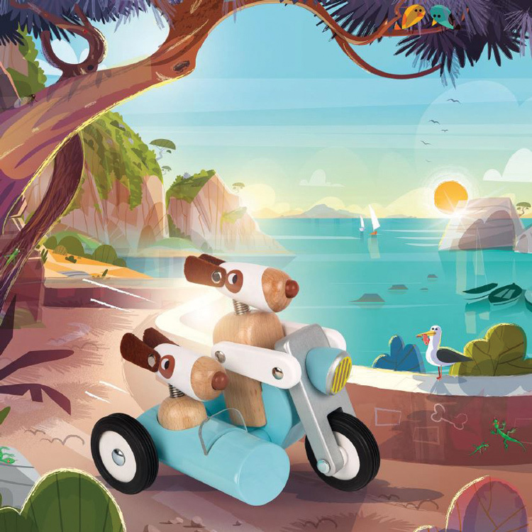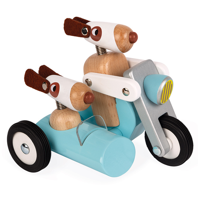 Presented in a window box, Janod Spirit is a lovely range of lacquered solid Cherry wood vehicles. Sidecar Philip has a friend on board, felt ears flying, they are having loads of fun. Featuring his own inimitable style and French design, Philip has rubber wheels for a smooth and quiet ride and is sure to please young and old!