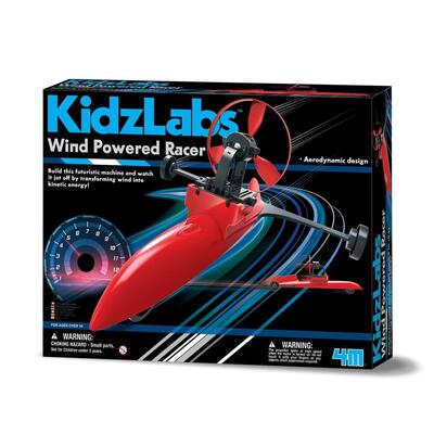 Build this futuristic machine and watch it jet off by transforming wind into kinetic energy! Learn about propeller propulsion when building and playing with the Wind Powered Racer. The high RPM propeller engine makes for exciting racing with its streamlined design allowing super high top speeds. It has a large rear wheel span for extra stability at high speed.