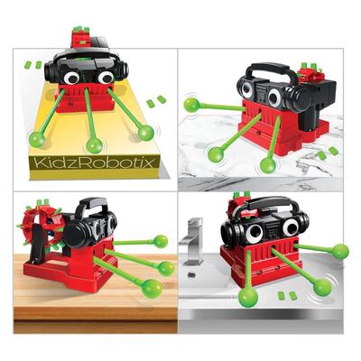 Build this fun drummer robot. Programme a beat with the unique coding reel - so many different combinations available for your musical genius! Choose your own drumming surface to hear the different sounds the drummer robot makes. Kids can learn simple coding techniques without the use of a device. Batteries are required.