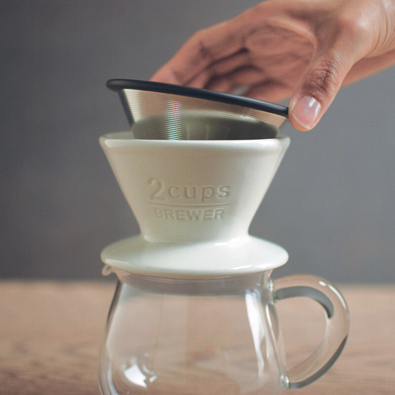 This 2 cup porcelain brewer can be used with either a paper or stainless steel filter. Enjoy different styles by placing on top of your mug or server.