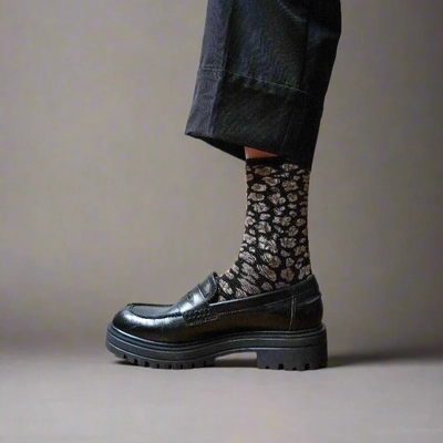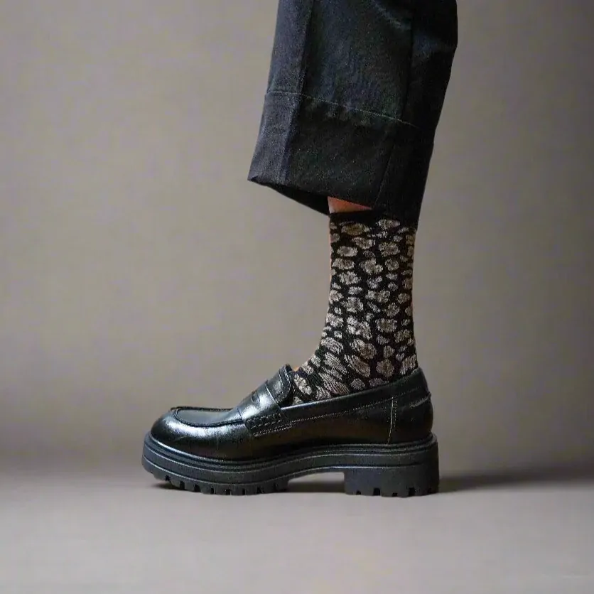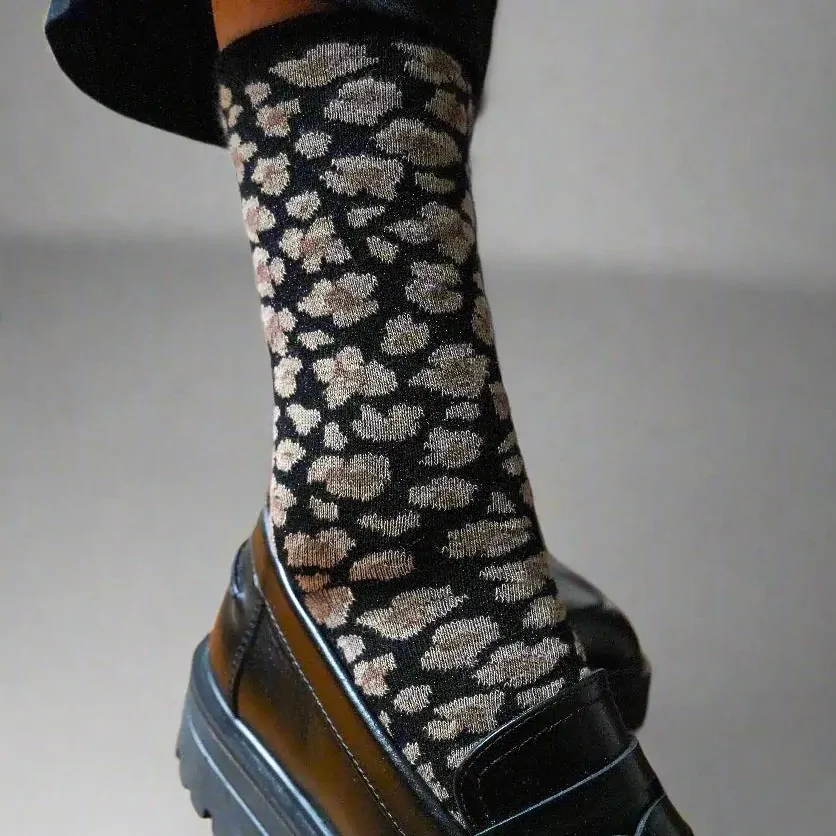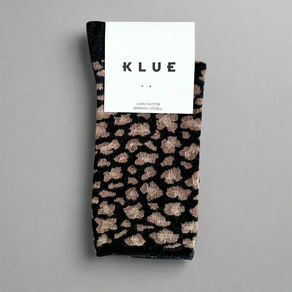 KLUE Glitter Lurex Socks Leopard black