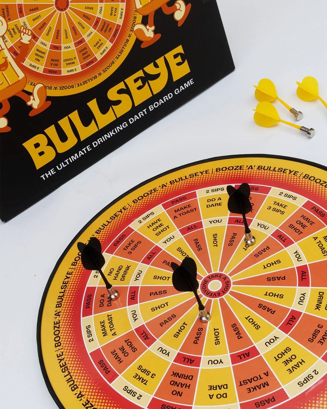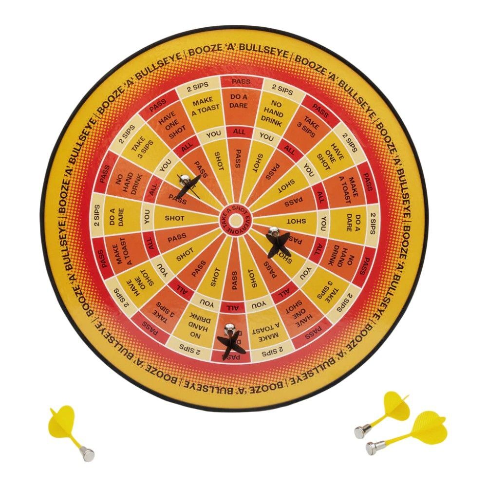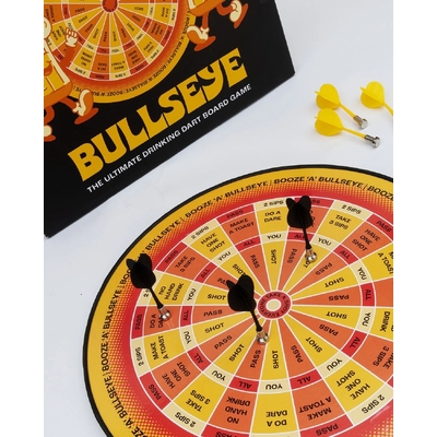 HOW TO PLAY: Drinks at the ready! Hang the dartboard on your wall or attach with Command Strips. Take it in turns to throw one dart or three (Optional) completing whichever dare, challenge or command your dart lands on.