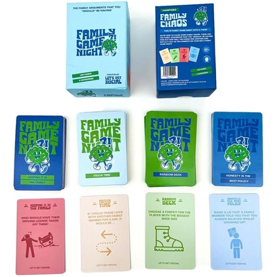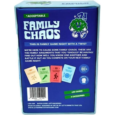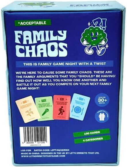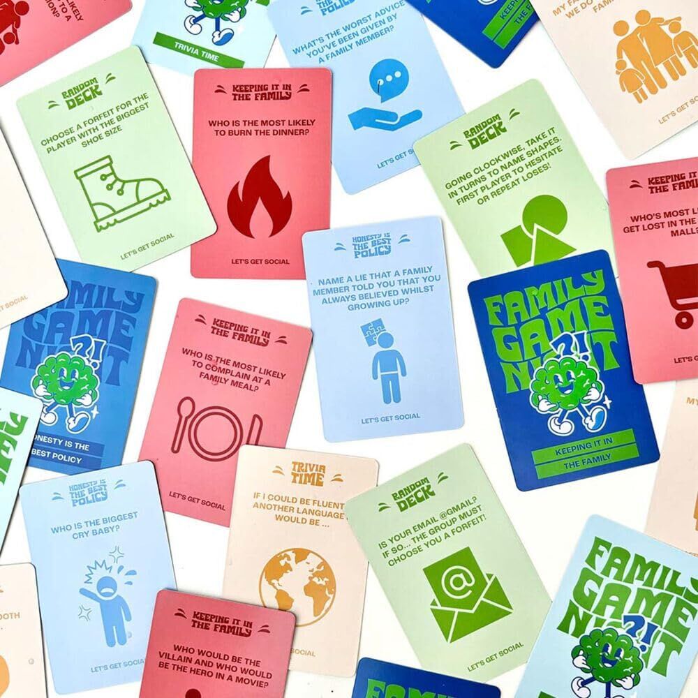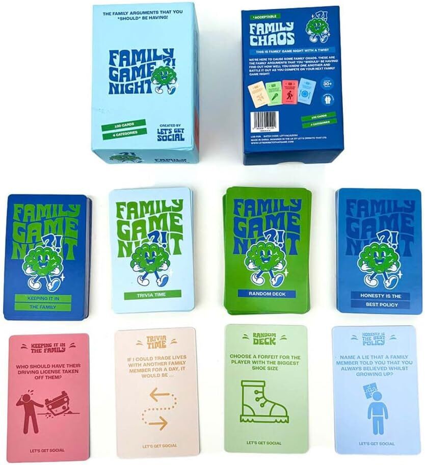 Let’s Replay Family Game Night is a fast-paced, laugh-out-loud card game built for family fun, playful rivalry and a bit of cheeky chaos. With 120 cards spread across four themed categories, players are challenged with trivia questions, dares, call-outs and unexpected prompts designed to get everyone talking, guessing and reacting. Whether you're answering personal questions, pointing fingers in a family face-off, or competing in light-hearted challenges, this game brings energy and unpredictability to any group setting. The goal is simple, stir up laughs, spark conversations, and create hilarious memories together. Easy to learn and quick to play, the game is ideal for casual evenings at home, weekends away, school holidays or as a boredom-buster during family gatherings. Whether your crew is super competitive or just in it for the laughs, the mix of silly, clever and thought-provoking cards ensures every round is different. Suitable for players aged 8 and older, Family Game Night encourages bonding, friendly banter and shared fun for all ages.