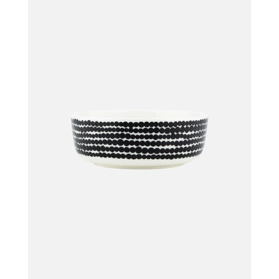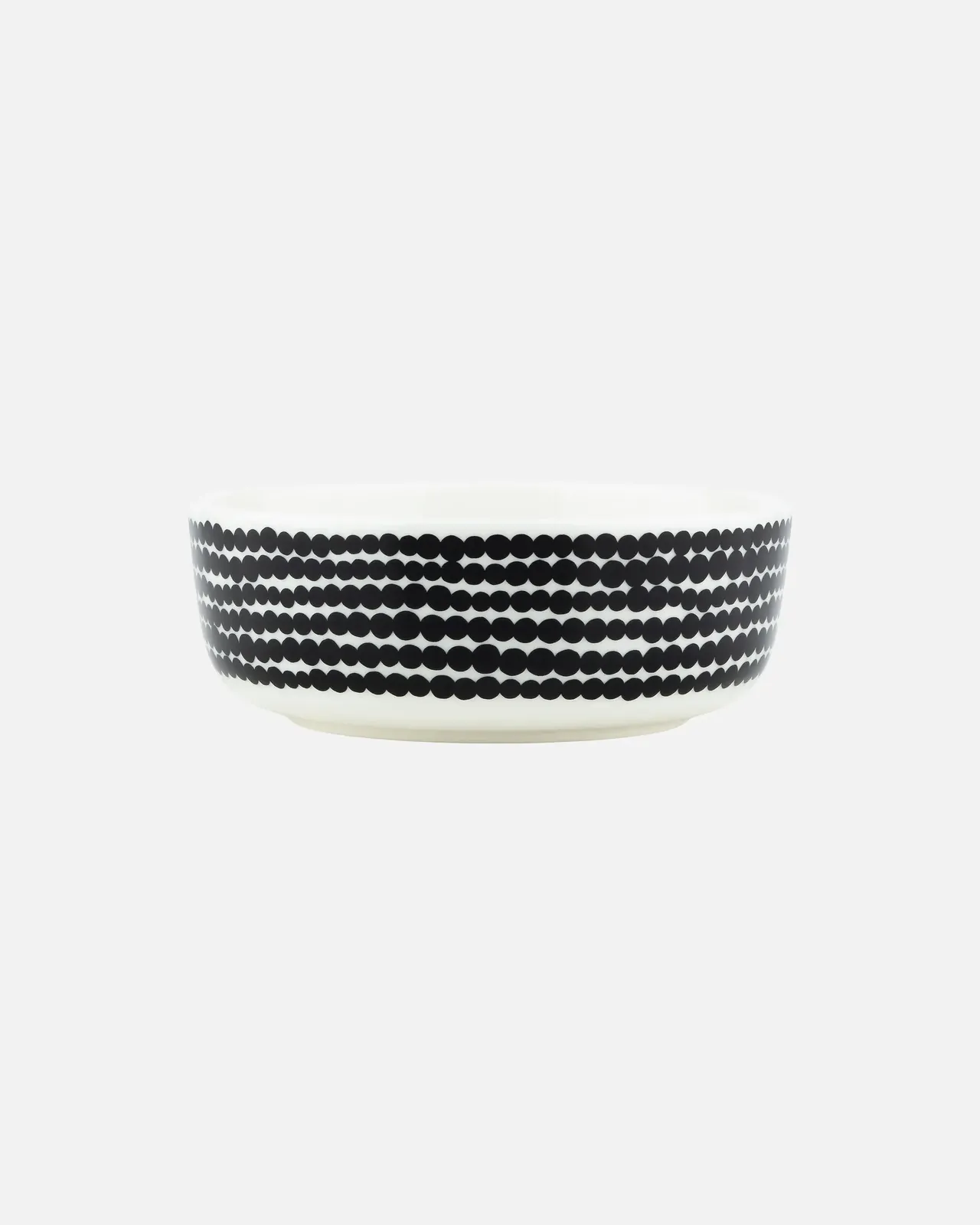 The Siirtolapuutarha pattern Oiva bowl is made of white stoneware, which is dishwasher, oven, microwave, and freezer safe.