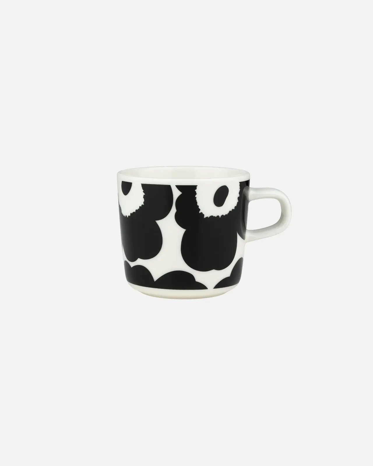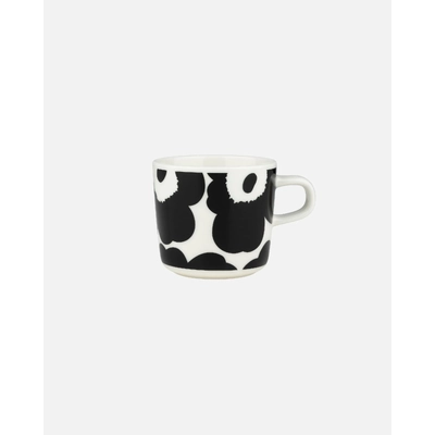 The Oiva mug with Unikko pattern is made of white stoneware that is dishwasher, oven, microwave and freezer proof. Please remove the sticker from the bottom of the product before use. The sticker contains a small amount of metal. Oiva products are designed by Sami Ruotsalainen.