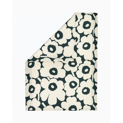 Made from a soft cotton and hemp blend with the chambray technique, this duvet cover features the classic Unikko (poppy) pattern in cotton and dark green colours. The duvet cover has a thread count of 120 and hand openings at the top corners that make changing the covers easier.