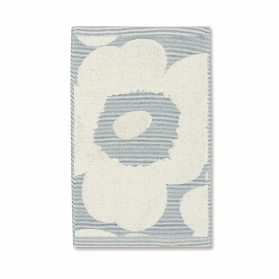 This small cotton guest towel with a jacquard knit has an off white and blue Unikko pattern. Due to the special knit, the towel’s backside is a “negative” of the front side.