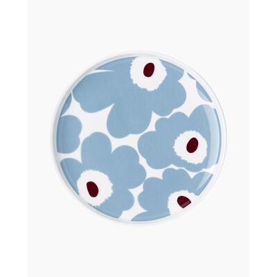 The Oiva plate is made of dishwasher, oven, microwave and freezer safe white stoneware. Marimekko’s famous poppy pattern Unikko was born in 1964 in a time when the design house’s collections featured mostly abstract prints. Designer Maija Isola wanted to create something interesting from this organic theme and designed an entire range of floral prints. Today, the iconic flower represents creativity.