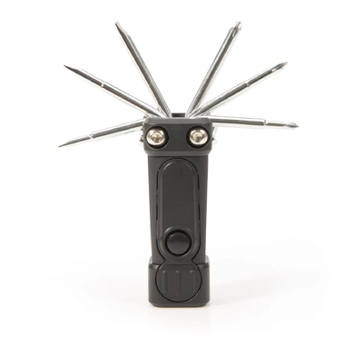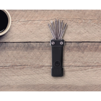 Includes 6 folding screwdrivers, LED task light and LED flashlight