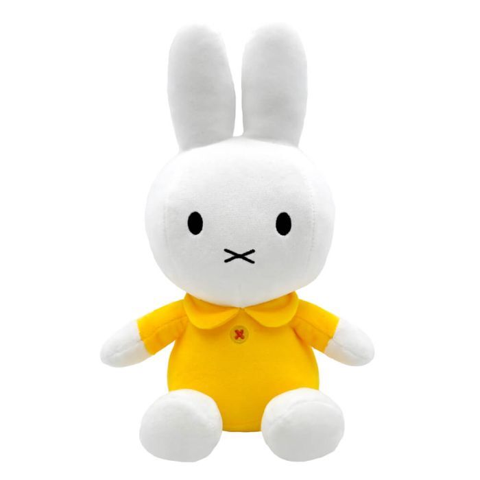 Boasting a bright yellow dress and a dark-eyed expression, this little white rabbit stuffed animal is instantly recognizable as Miffy! Fans will love her familiar appearance and soft materials. Miffy’s velvety feel can be attributed to the quality plush fabrics we’ve selected to depict this beloved children’s character. Silky interior polyester fill makes Miffy squeezable, soft and lovable. Her endearing crisscross mouth and yellow button on her yellow dress are created with safe, embroidered details.