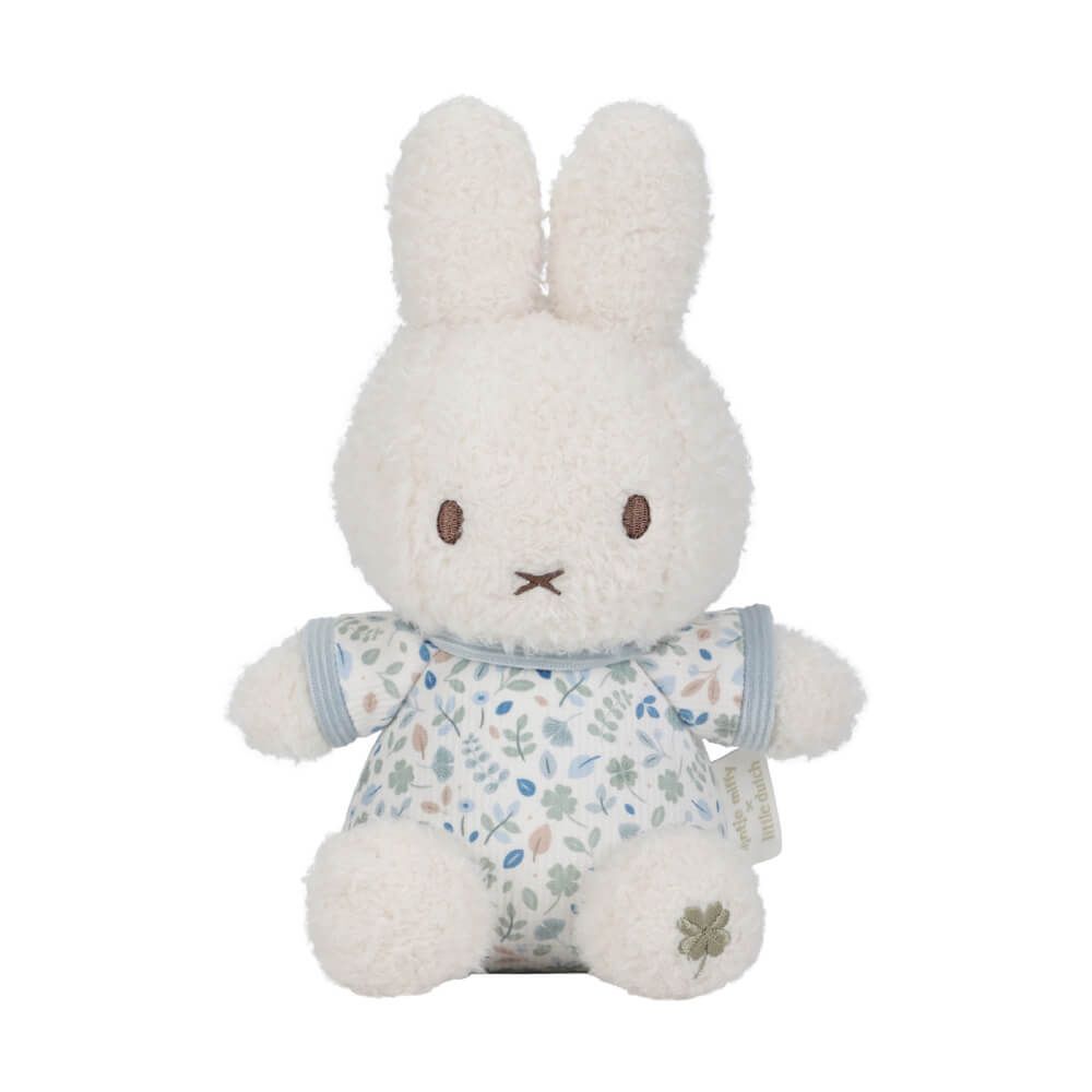 Ready for a cuddle? This Miffy is waiting for a cuddle and hug. She is incredibly soft and has the perfect size to go everywhere. Cuddly Miffy is made of soft plush and printed corduroy and stands at 22cm tall. She is dressed in Lucky Leaves print, a Little Dutch design. An iconic bunny that no nursery can do without.