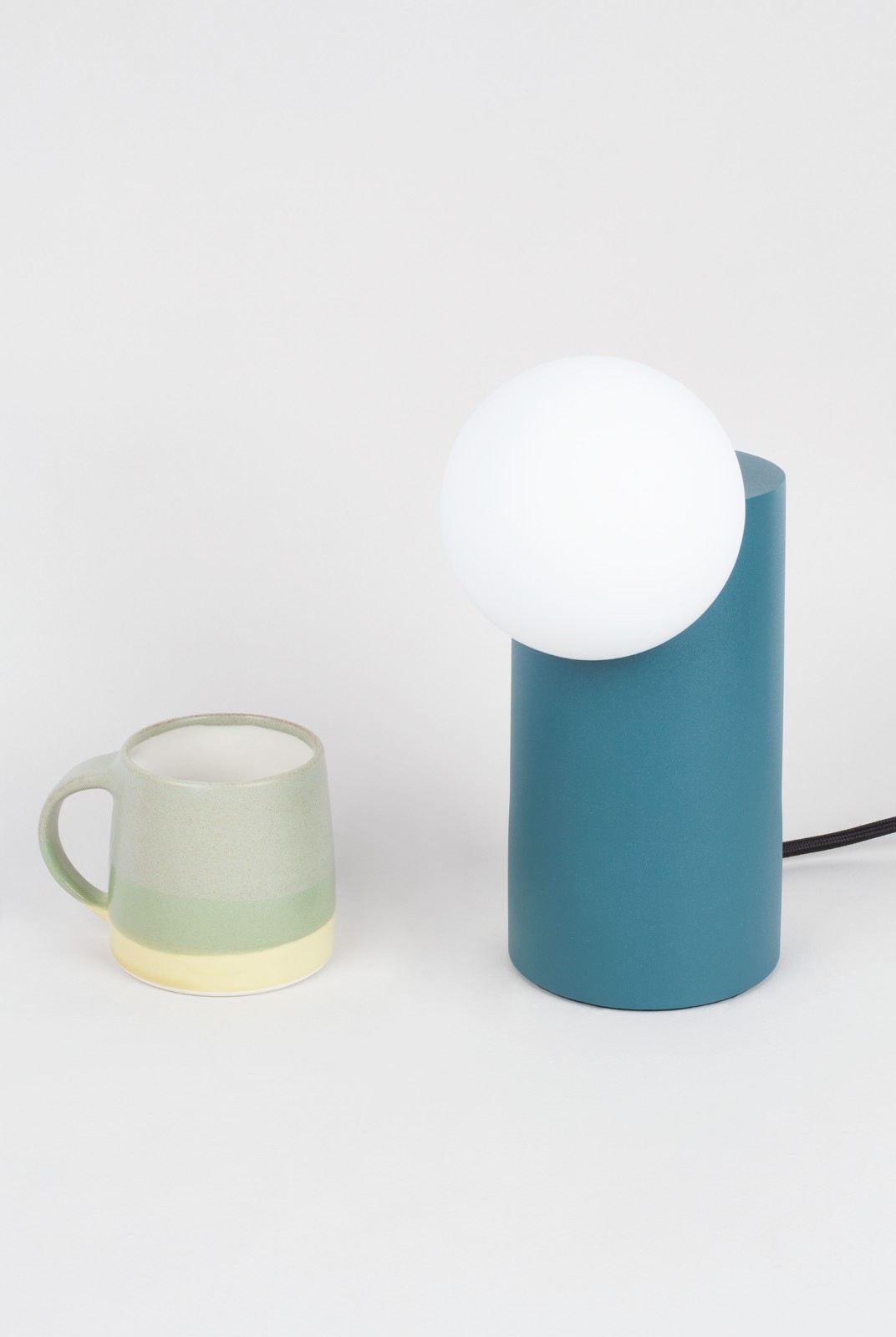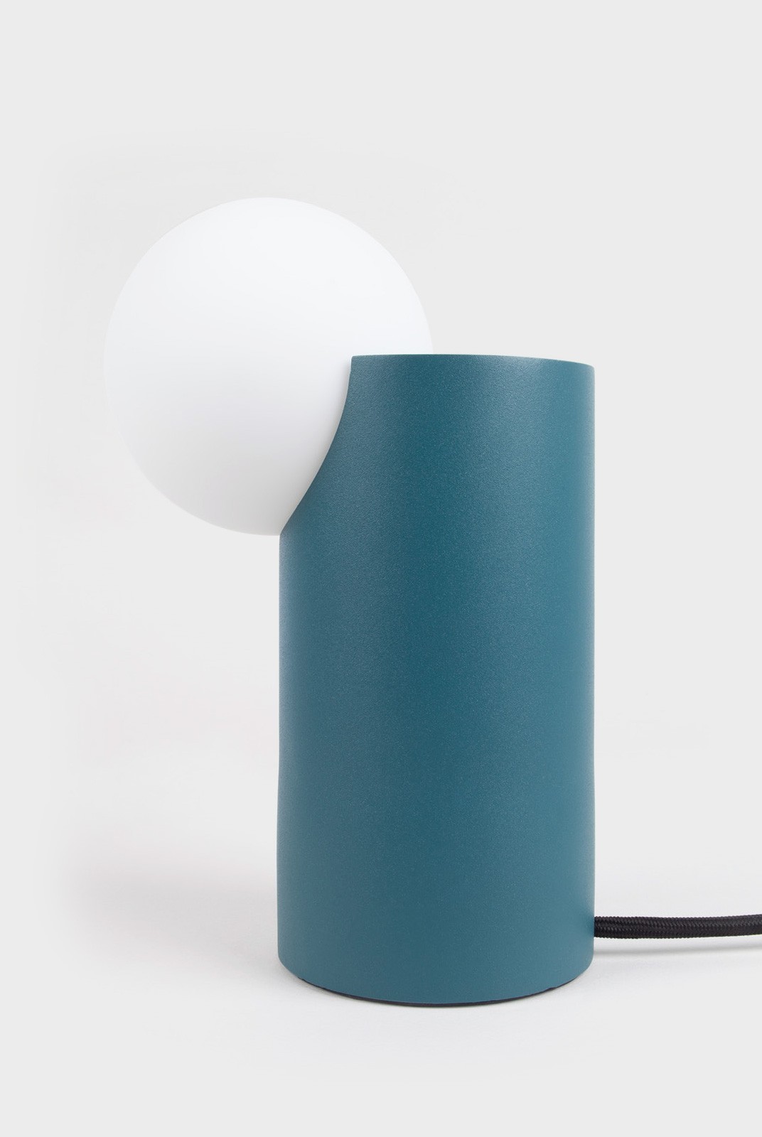 Add a unique twist to your home or living space with this cylindrical Milligram Studio lamp in green.