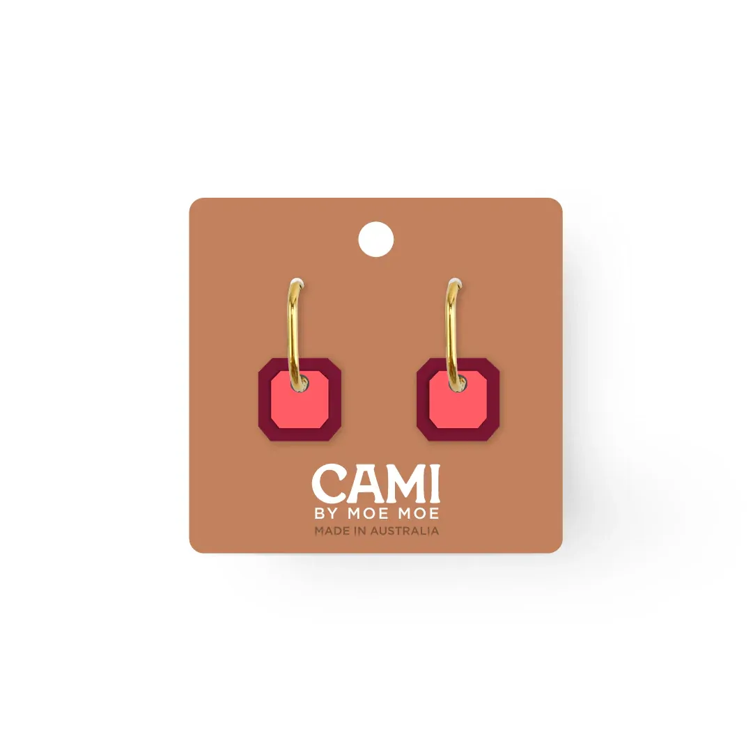 Moe Moe Design Earrings - Cami Gem Burgundy/Coral