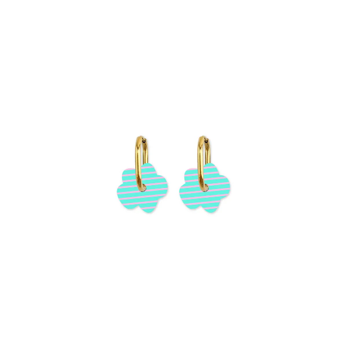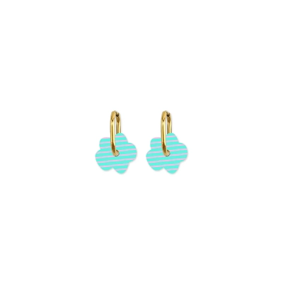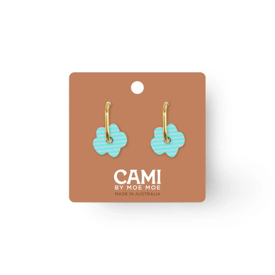 Moe Moe Design Earrings - Cami Striped Flower Aqua/Pink