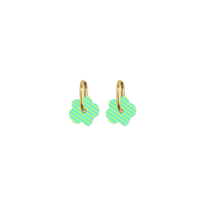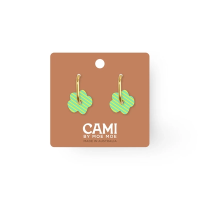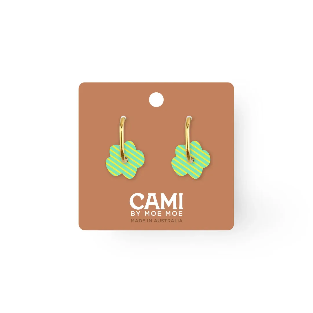 Moe Moe Design Earrings - Cami Striped Flower Aqua/Yellow