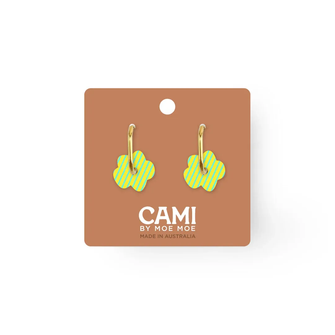 Moe Moe Design Earrings - Cami Striped Flower Yellow/Blue