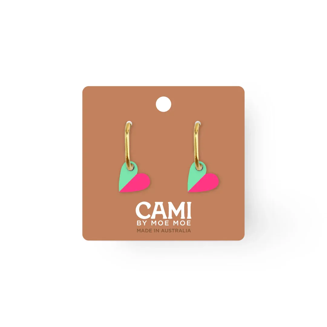 Moe Moe Design Earrings - Cami Vovo Heart Bold Pink/Mint