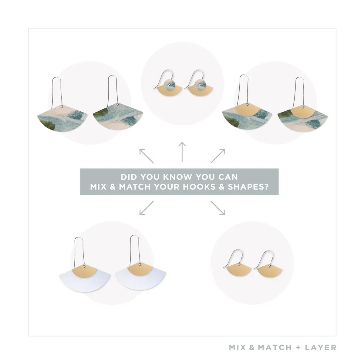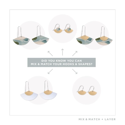 The "Elegance" earrings Range by Kiasmin feature a stunning blend of deep olive green, warm beige, and soft black tones, accented with gold to add warmth and sophistication to any outfit. The Aura Duo Drop Fan Pack enhances this versatility, offering many different combinations to elevate your look.