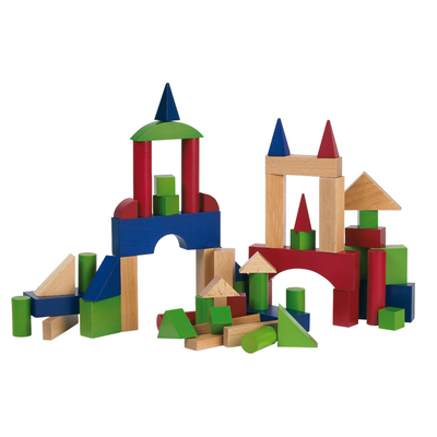 54 Pieces wooden blocks of various shapes. Made with Beech Wood
