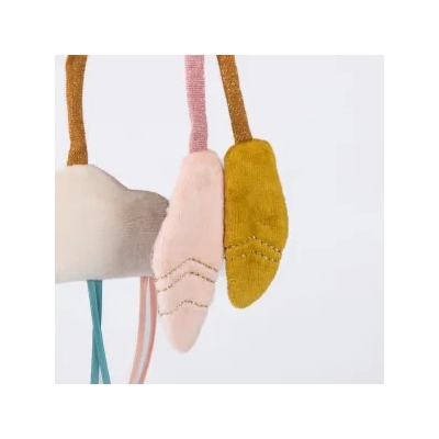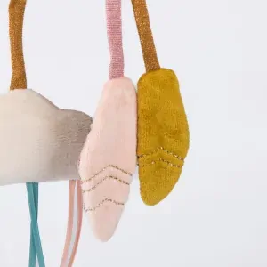 The hanging activity swan from Moulin Roty’s Ecole de Danse range will provide a range of sensory experiences for your little one. Swan is made from super soft velour with accents of jersey, cotton and tulle. This lovely activity toy includes a rattle, a squeaky and crinkly wings and leaves.