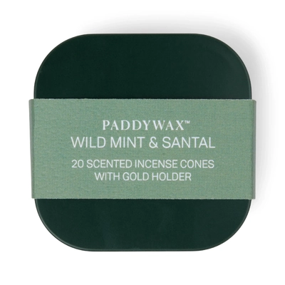 Paddywax 20 Scented Incense Cones and Holder in Green Tin- Wild Mint & Santal