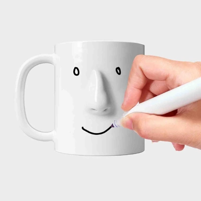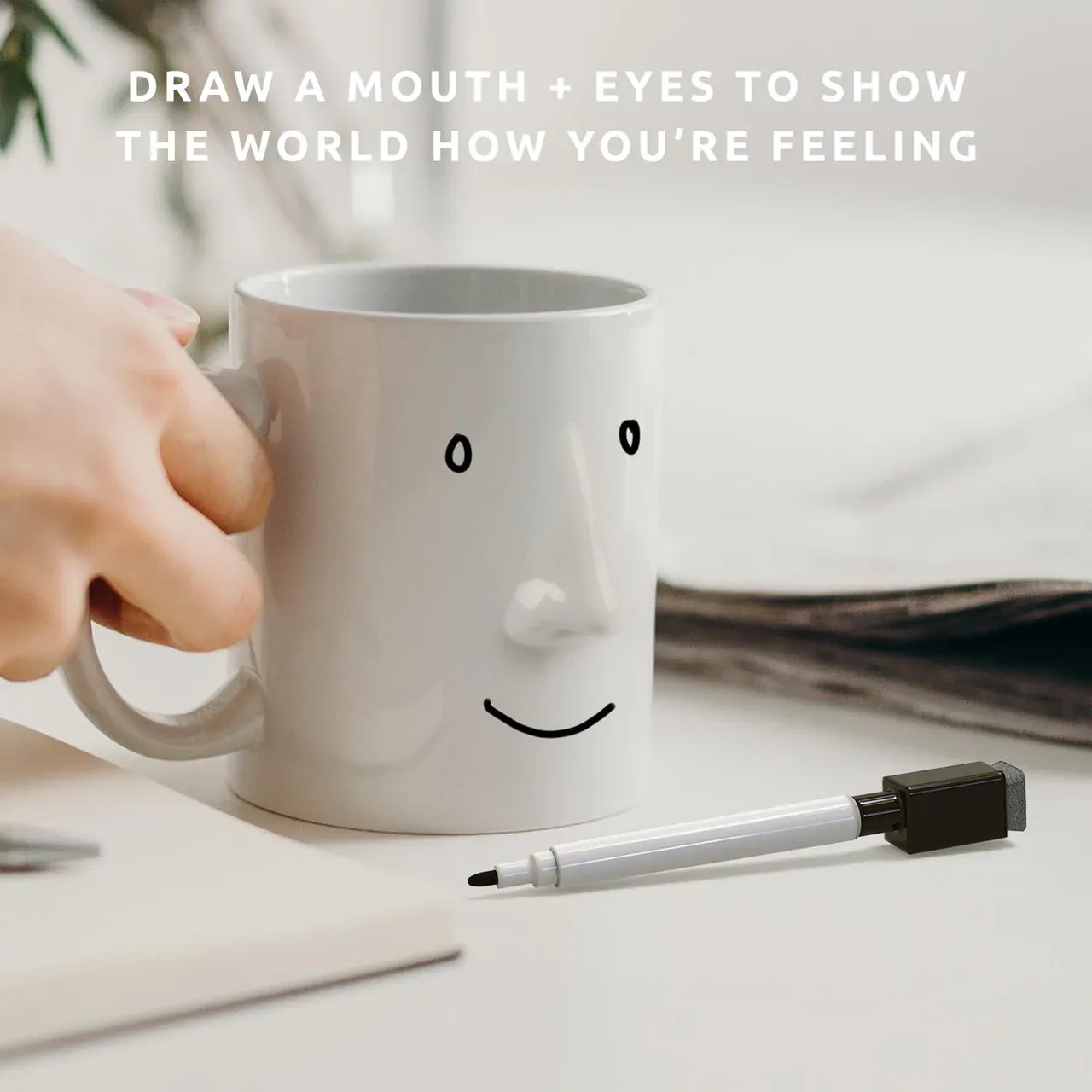 Draw a mouth and eyes to show the world how you're feeling today! This fun ceramic mug comes with a dry-wipe pen. Each time you have a coffee or tea, doodle on the mouth and eyes to share your mood with your friends, family and colleagues.