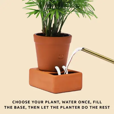 Simply choose your plant or herb, water once, fill the base, then let the planter do the rest. It will keep your plant perfectly watered for up to 8 weeks whilst making you smile everyday.