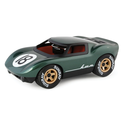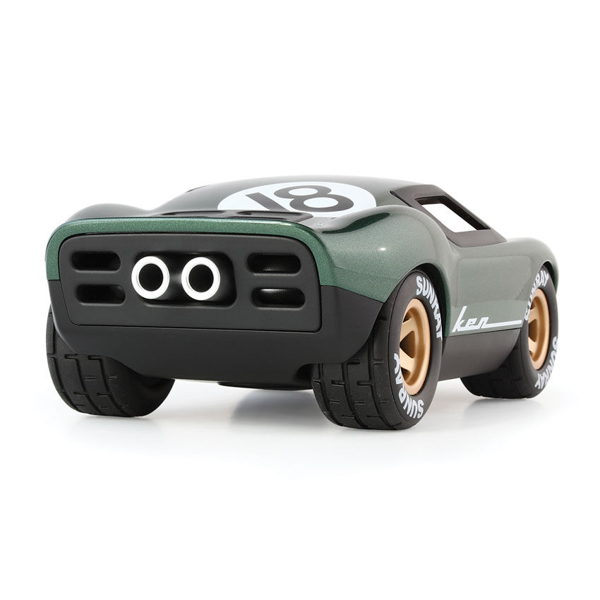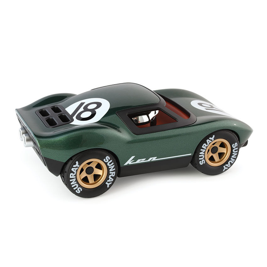 Ken Rogers is a masterclass in vintage cool, drawing inspiration from the golden age of American muscle cars. With a deep, glossy dark green body and sleek curves that mean business, this racing icon commands attention. Chrome dual rear exhausts, classic 5-spoke wheels, and crisp detailing complete the look. The white racing number roundel adds an authentic track-ready touch, while the chrome-helmeted driver is locked in and ready for glory.