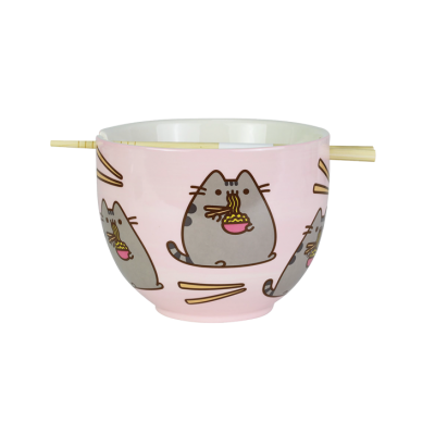Celebrate your Pusheen fandom with this durable stoneware bowl with bamboo chopsticks. Great for your ramen noodles or rice.